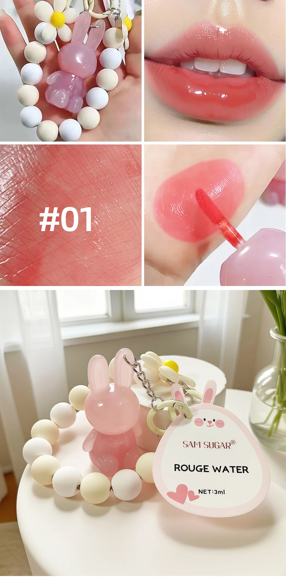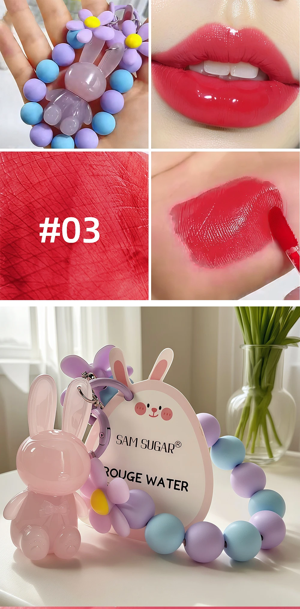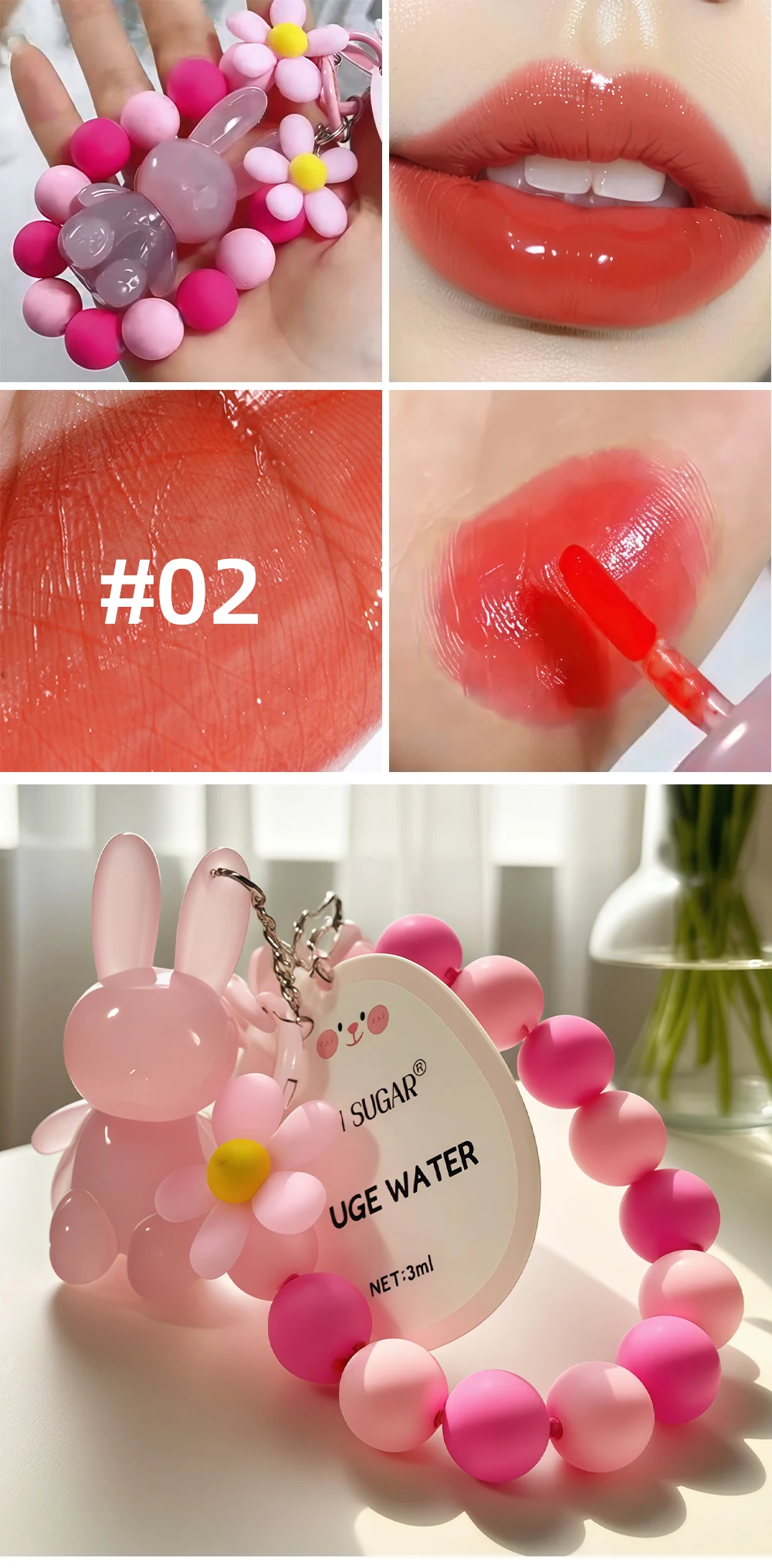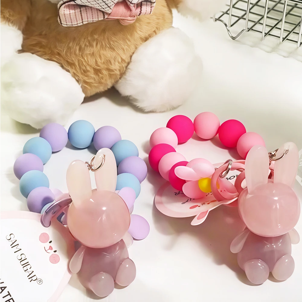 Cartoon Cute Rabbit Hand Bracelet Keychain Moisturizing Lip Gloss